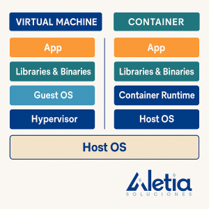 A diferencia de las máquinas virtuales, los contenedores no requieren un sistema operativo completo por instancia, ya que usan el kernel del sistema subyacente. Esto los hace más rápidos, más portables y mucho más eficientes.